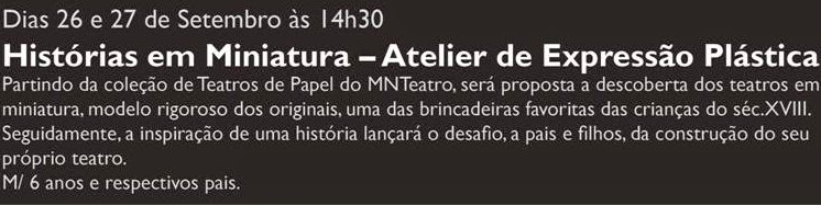 OLÁ CRIANÇAS | OLÁ JOVENS | TALVEZ LHES INTERESSE (42) | «Histórias em Miniatura - Atelier de Expressão Plástica»| Museu do Teatro | 26 e 27 de setembro | 14:30h